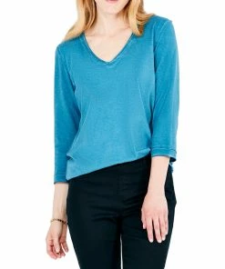 - 3/4-Sleeev Roll V T-Shirt In Deep Marine
