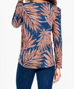 Hot Sale โค๏ธ Nic + Zoe Batik Ferns Long Puff Sleeve Tee in Brown Multi for ๐ฉ women ๐