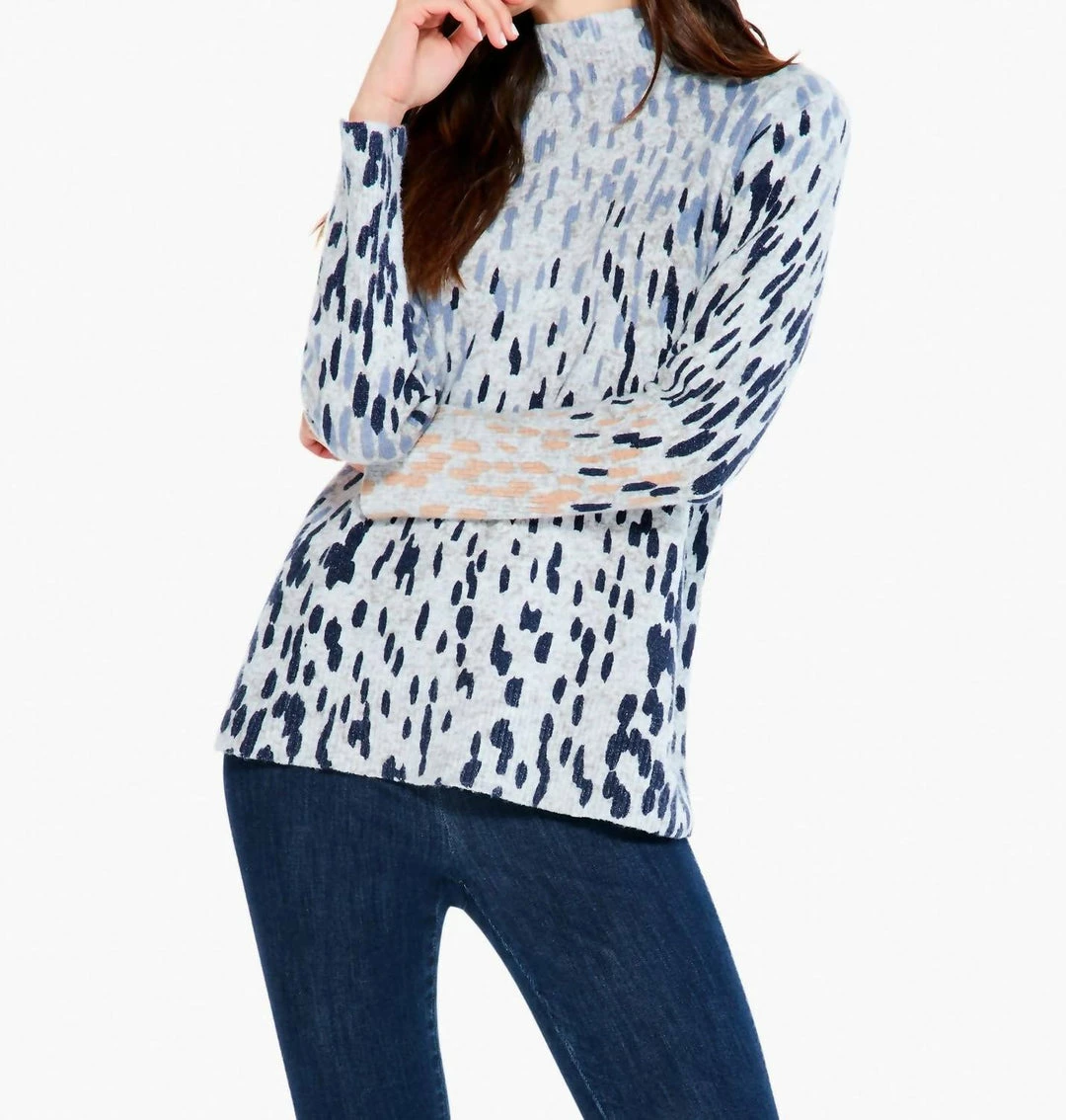 Wholesale โค๏ธ Nic + Zoe Cozy Up Spotted Turtleneck Sweater in Blue Multi for ๐ฉ women ๐
