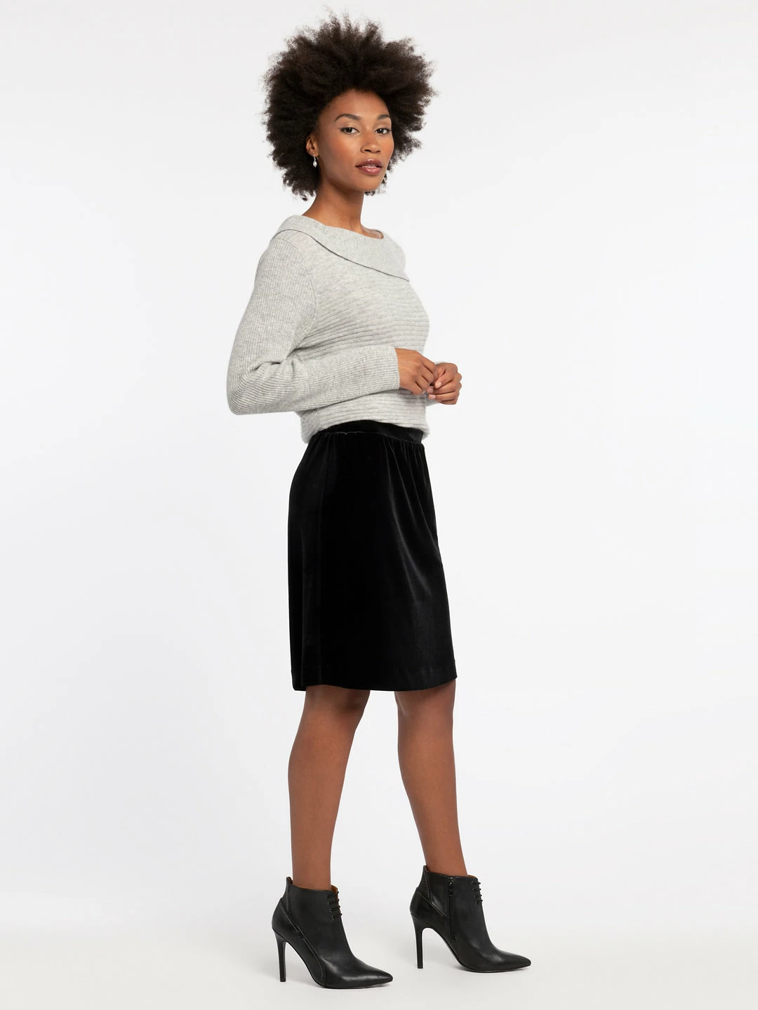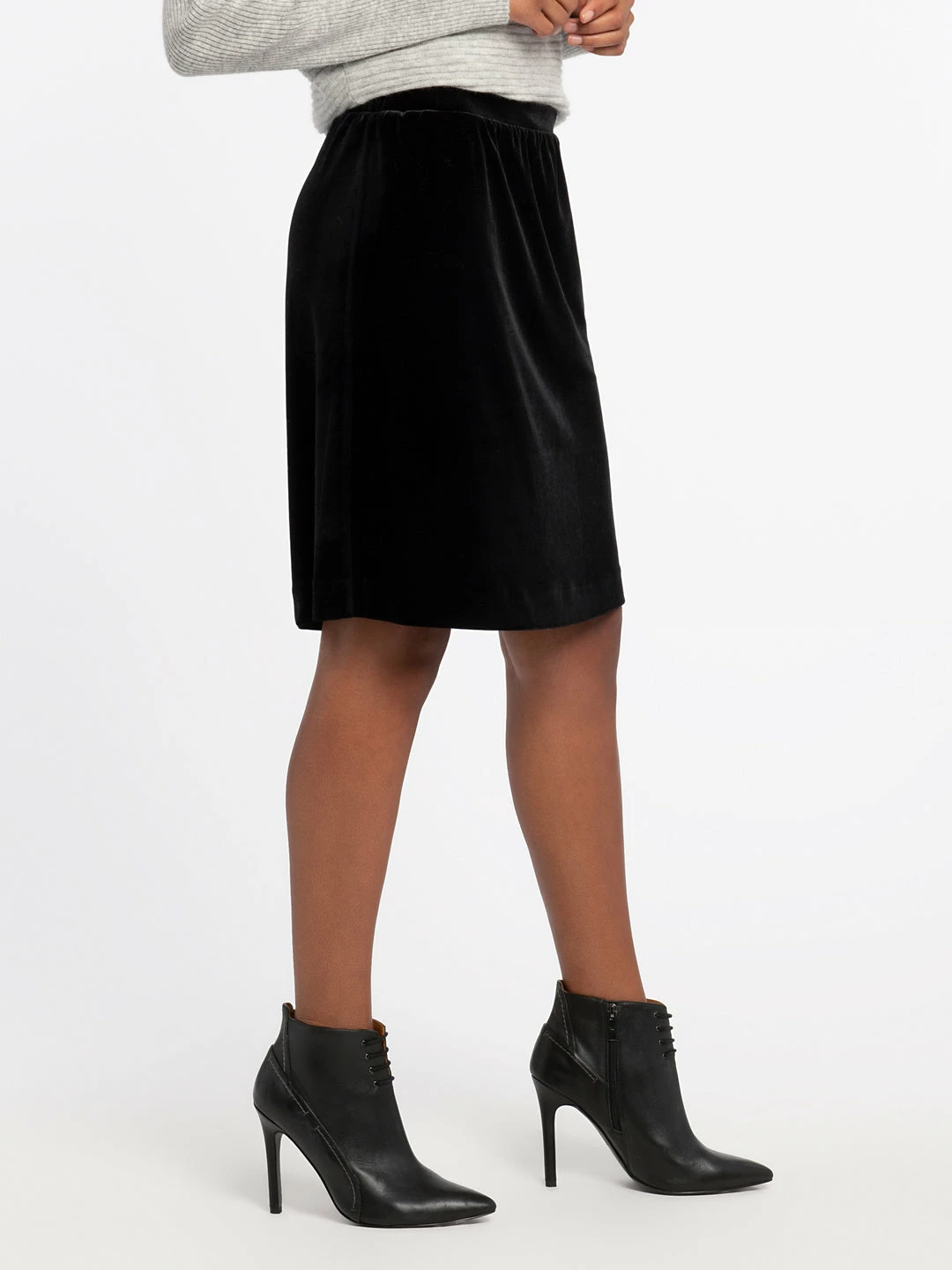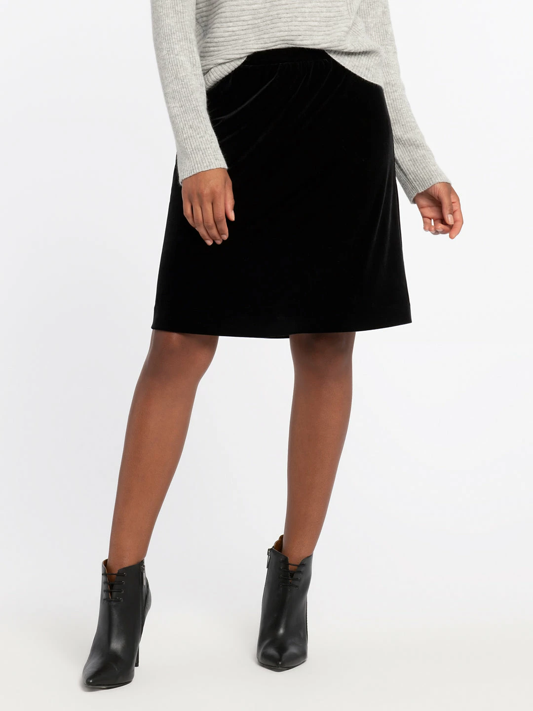 Soft and sumptuous velvet make this pull-on skirt perfect for party-season. The Darling Velvet Skirt falls above the knee and is an ever-flattering fit-and-flare style. We see you wearing this with crewneck sweaters, button-up blouses, and cardigans for a polished look that is ready for the holiday-season.