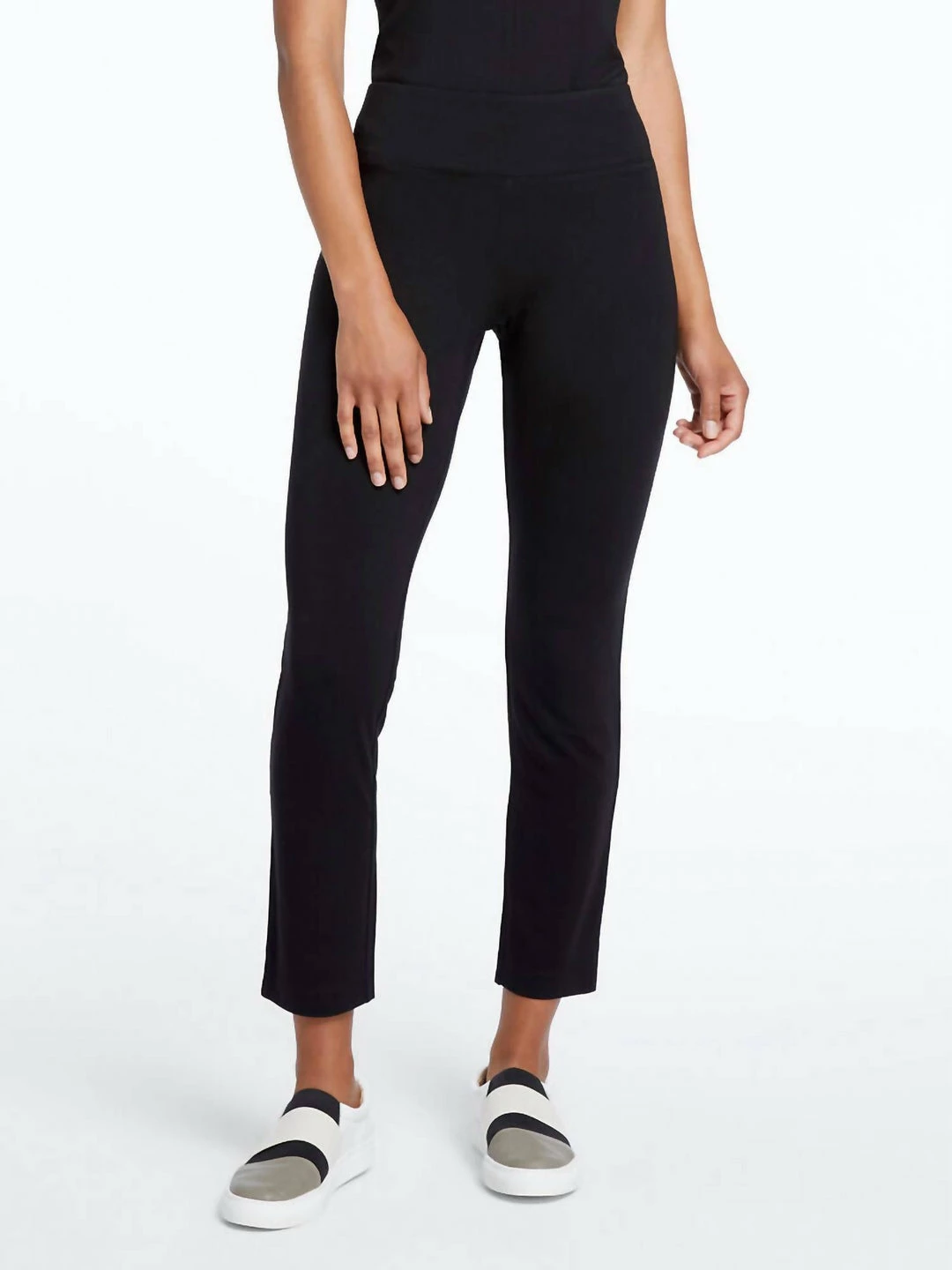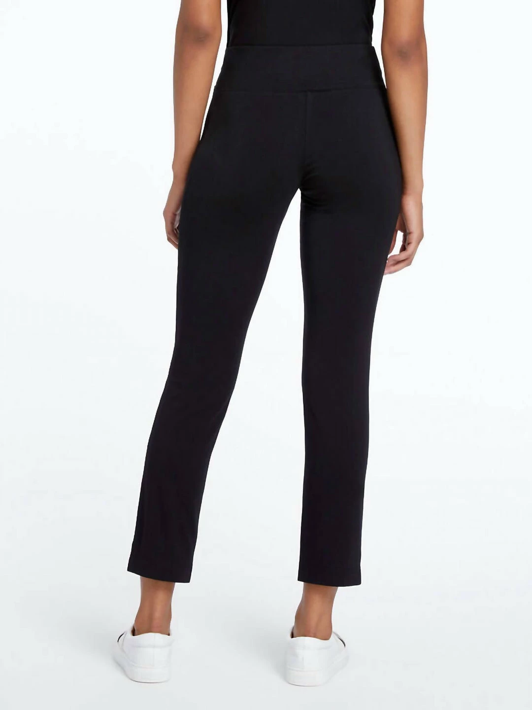 FeaturesKnit pantEaze fabricSits at waistPull onSlimAnkle lengthInseams – 28″Turn garment inside out. Machine wash cold with similar colors. Gentle Cycle. Do not bleach. Tumble dry low. Remove promptly. Cool iron on inside if needed.96% Rayon / 4% Spandex
