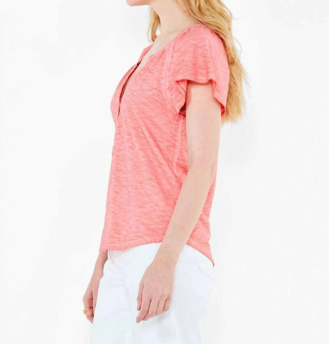 Budget ๐ Nic + Zoe Flutter Sleeve Henley in Guava for ๐ฉ women ๐คฉ