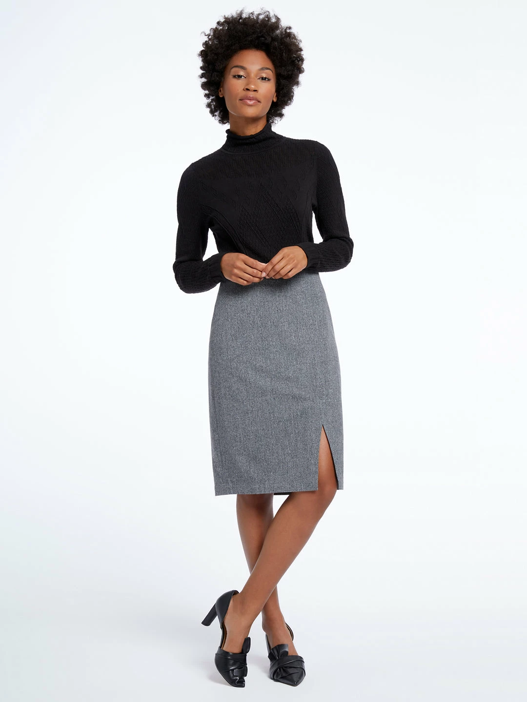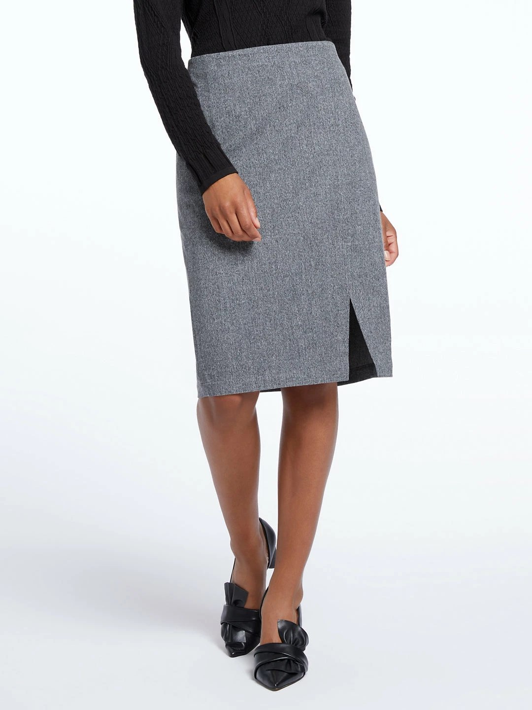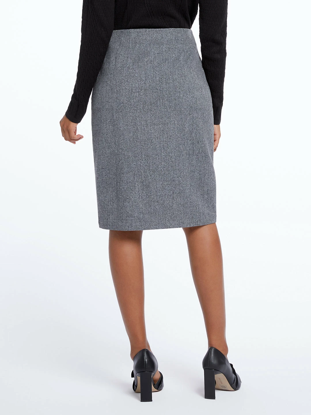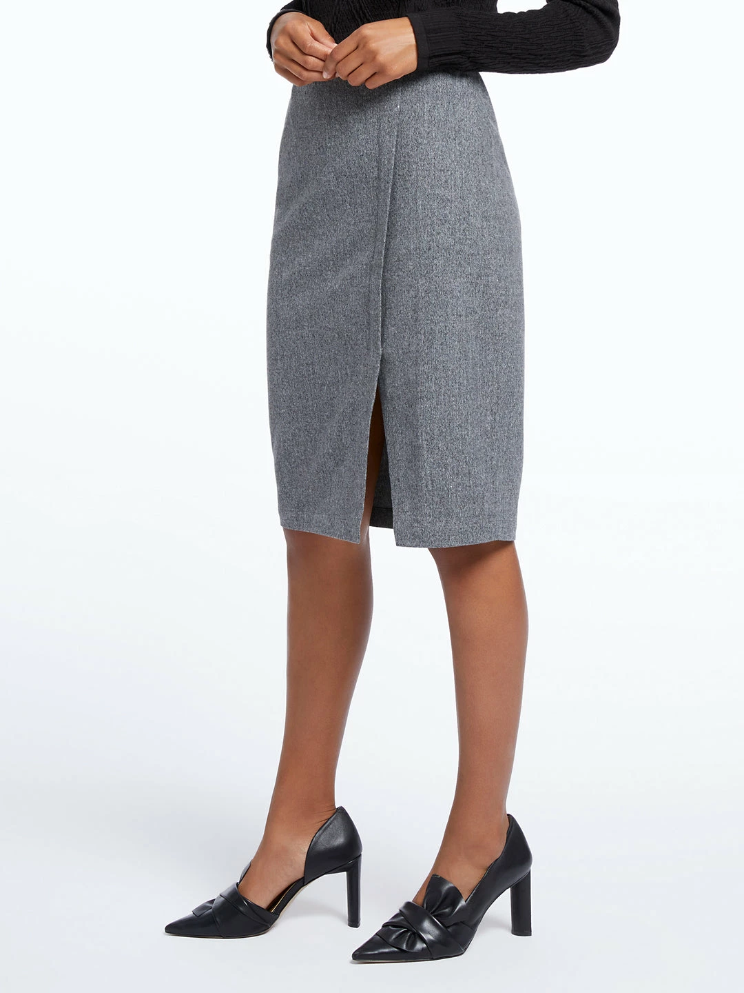 While never truly out of style, the pencil skirt is having a moment in the fashion limelight. Our Forever Flannel Skirt features cozy feel flannel with fashion forward asymmetrical front slit.