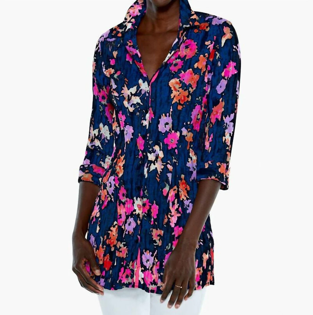 Give this a “glow”… our Glowing Blossoms Crinkle Top will lend colorful creativity to every outfit with this vibrant new print. The silhouette is easy and flattering with a shirt collar, ΓΒΎ sleeve, and button front. We cut this with a fresh, new fabric — it’s our “crinkle cotton” made with lightweight, sustainably sourced cotton and designed with a cool, intentionally crinkled look. This easy fabric takes color (and print!) beautifully — delivering a bold, artistic look for every print, pattern, and new hue.ΓΒ Machine wash cold with like colors. Do not bleach. To keep crinkled, twist while damp and allow to dry. Do not iron.100% Cotton; exclusive of decorationSIZE CHARTMISSYSIZE BUST WAIST HIP XS 0 32.5 24.5 34.5 2 33.5 25.5 35.5 S 4 34.5 26.5 36.5 6 35.5 27.5 37.5 M 8 36.5 29 39 10 37.5 30 40 L 12 39 31.5 41.5 14 40.5 33 43 XL 16 42 34.5 44.5 18 43.5 36 46