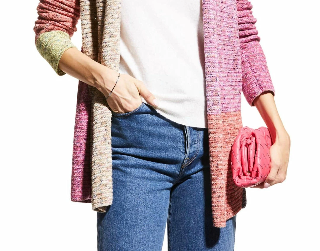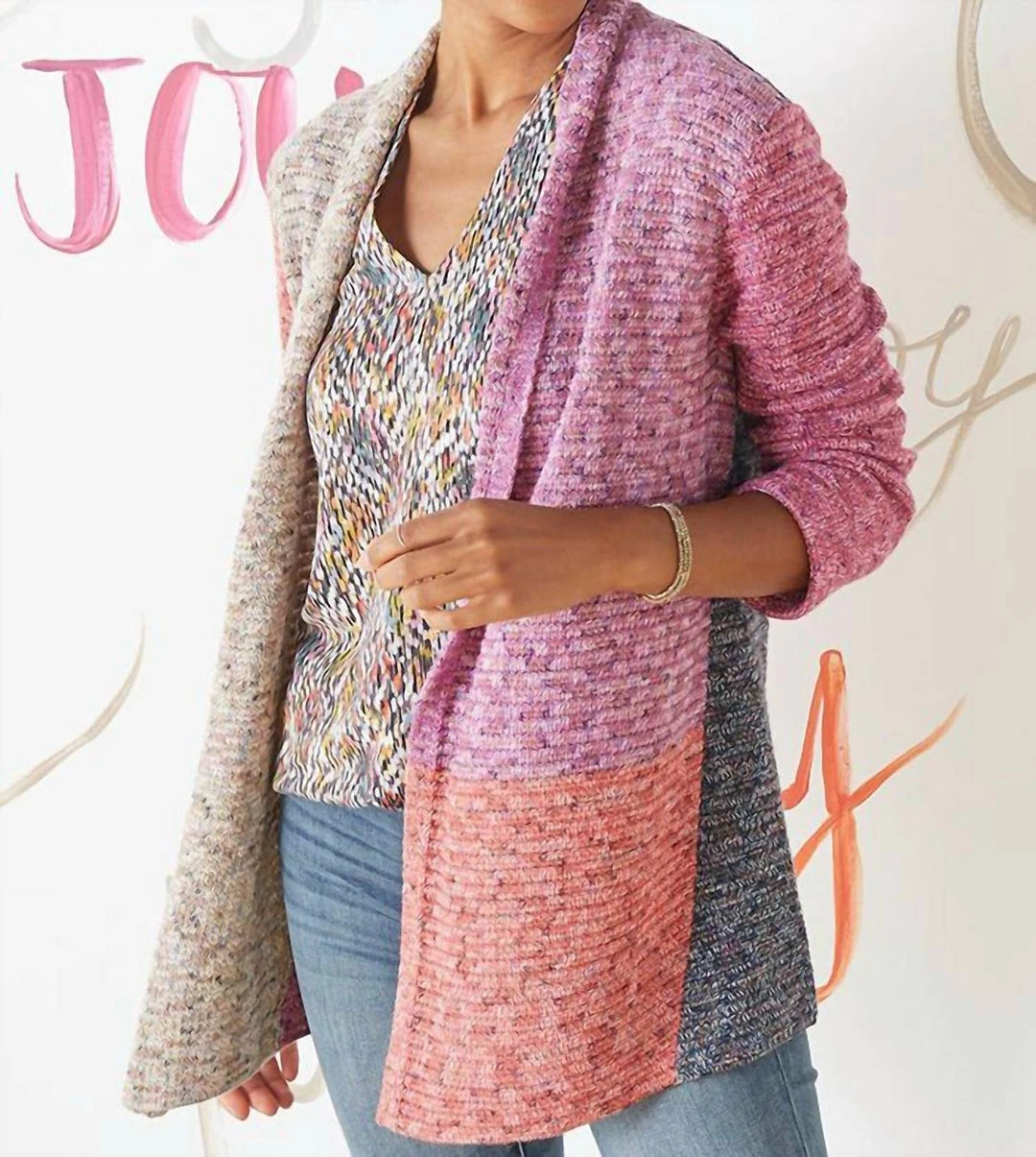 NIC+ZOE “Happy Zappy”ΓΒ colorblockedΓΒ cardigan infused with a mix of colors and textures using soft, novelty yarns for added playfulnessApprox. 27″L from shoulders to hemOpen frontLong sleevesEasy, relaxed fitCottonImportedModel is 5’10”