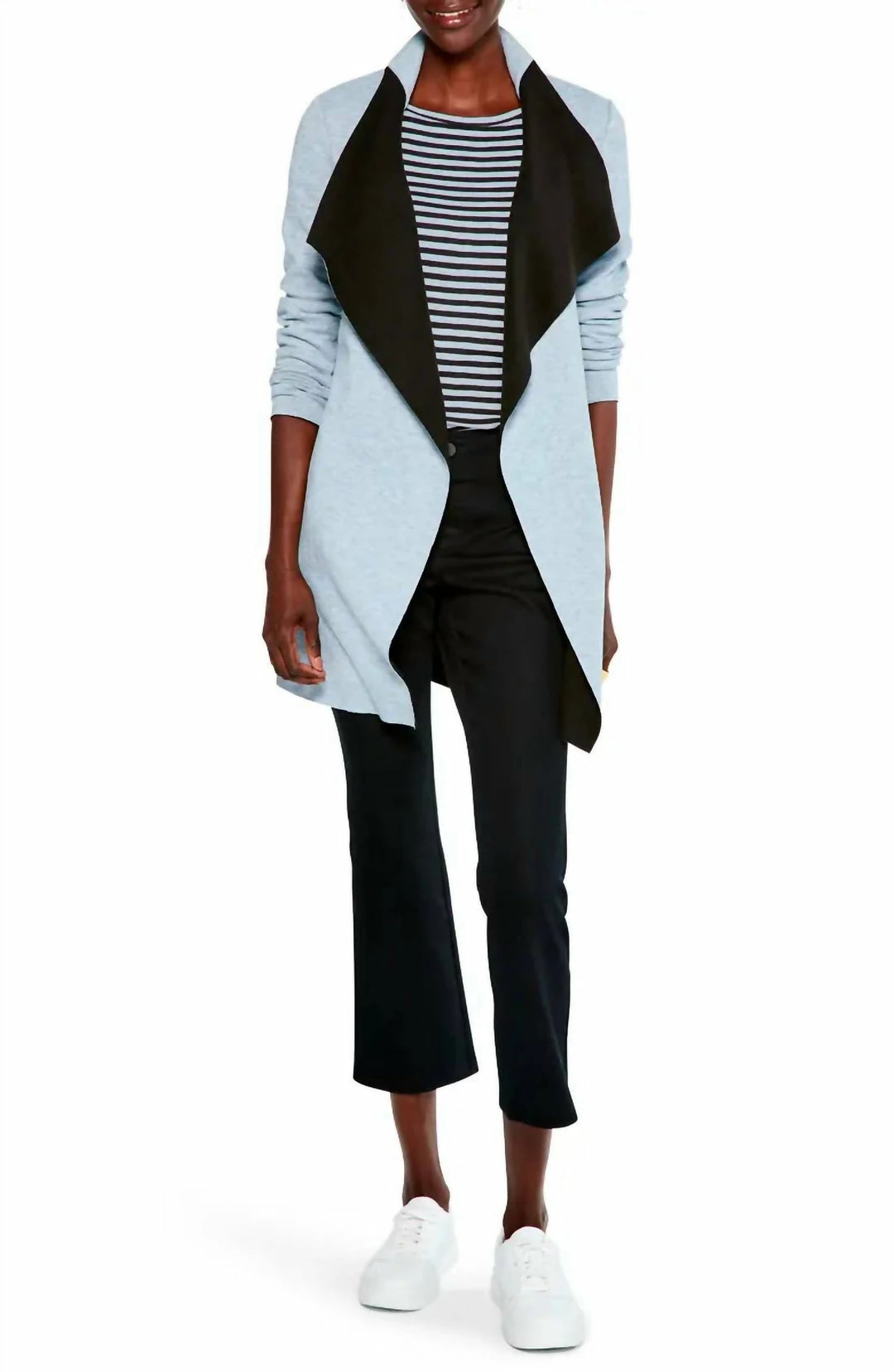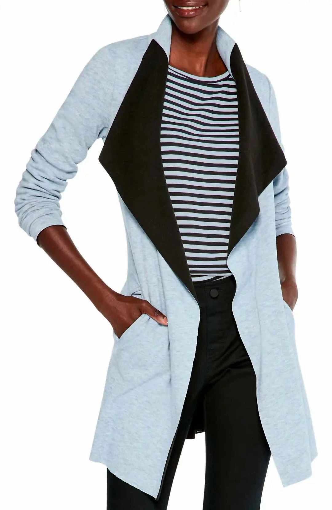 Cozy days get a style-up with a soft knit jacket done with an easy, open front and finished with waterfall lapels.DetailsΓΒ Long sleeves33″ length (size Medium)Waterfall lapelsDry clean or machine wash, dry flatSizingΓΒ S | M | L | XLFabricΓΒ 83% polyester, 12% rayon, 5% spandexFitΓΒ Fitted