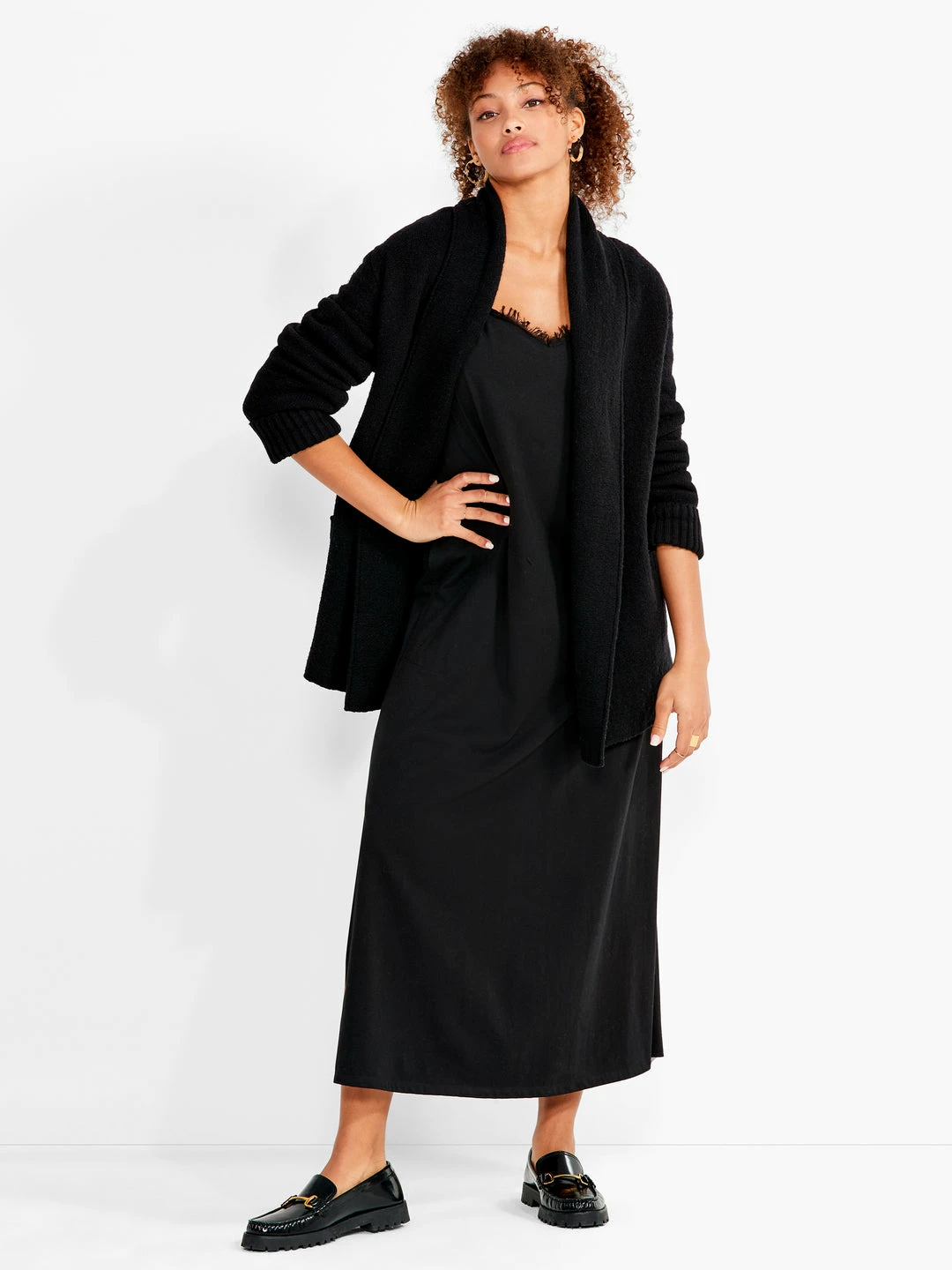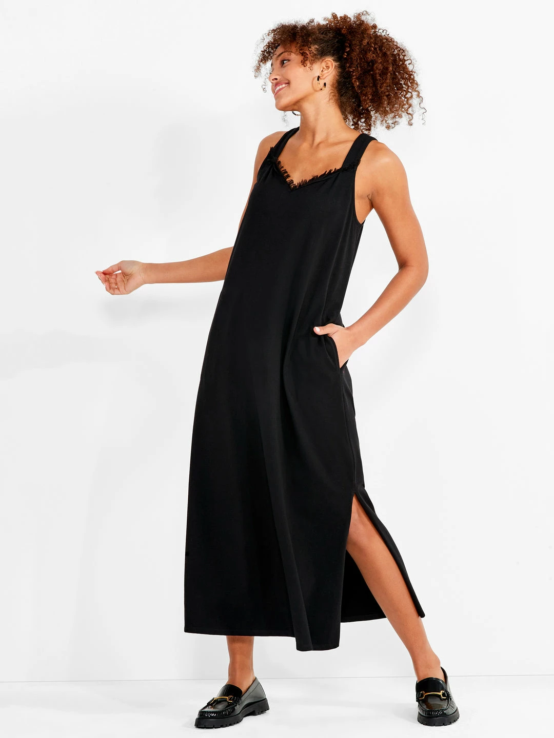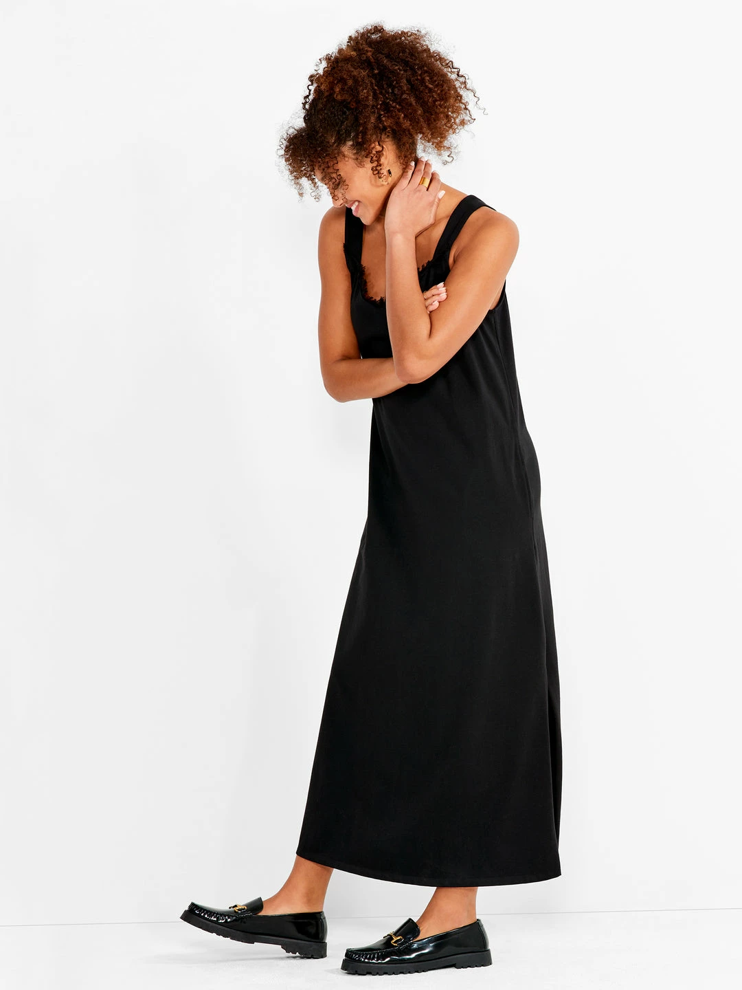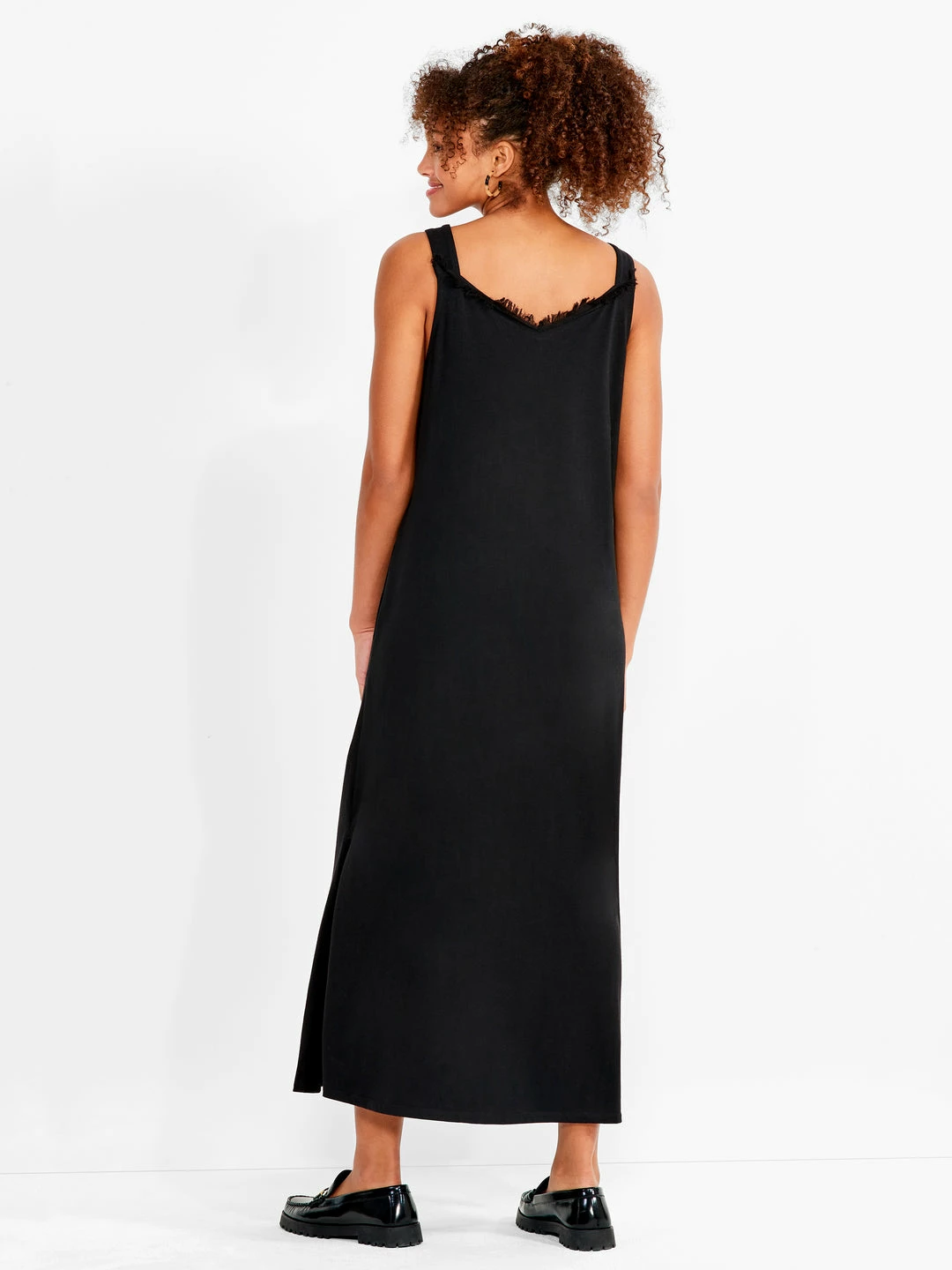 We’ve updated the classic slip silhouette with some modern touches – a more relaxed fit (while maintining the iconic straight silhouette), seam pockets, and a touch of fringe along the easy V-neck for a touch of texture. Made from our lightweight Perfect Knit fabric with a little added stretch to help you hit your stride.