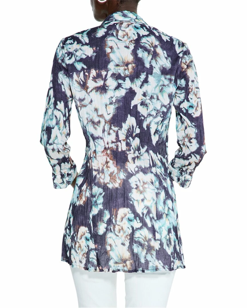 - Petite Denim Blooms Crinkle Top In Blue Multicolor