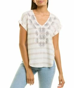 Wholesale ๐ NIC+ZOE Petite Embroidered Stripe Linen-Blend Top for ๐ฉ women ๐