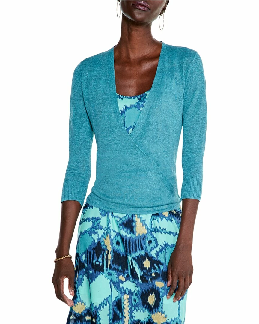 - Plus 4-Way Linen-Blend Cardigan In Aqua Surf