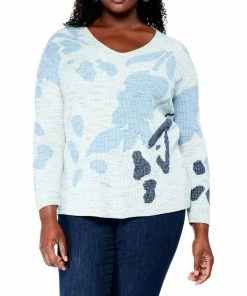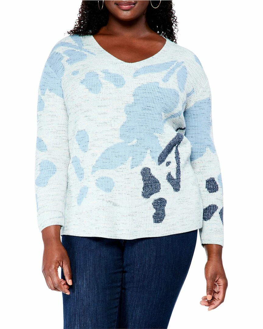 - Plus Breezy Leaves Sweater In Blue Multicolor