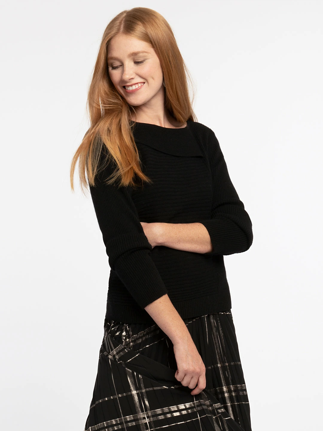 Don’t hold your applause. Our Praise Sweater is about to be your favorite item of the season. Layer our cozy knit sweater with fold over neckline and shorter length sweater with items under or over. Pair with hi rise jeans or midi skirts.