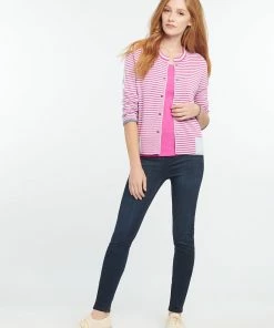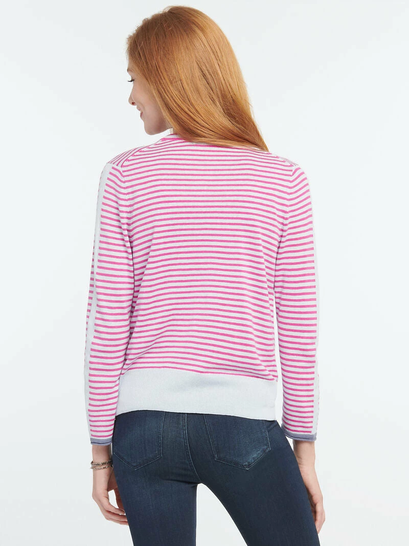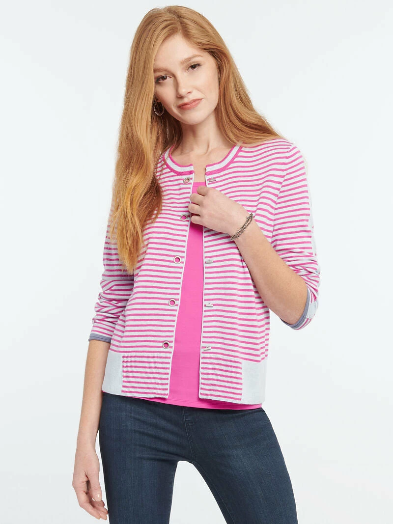 PINK MULTI SWEATER STRIPED TOGGLE CARDIGAN